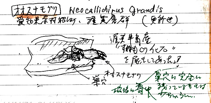 オオスナモグリの巣穴に保存された化石のスケッチ 最初に採取した化石で巣穴に保存されたものは世界で3例目との事 |