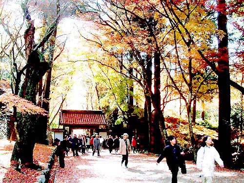 ![]() 大本殿前のキツネ像(左) 、背景は祥殿(書院) |