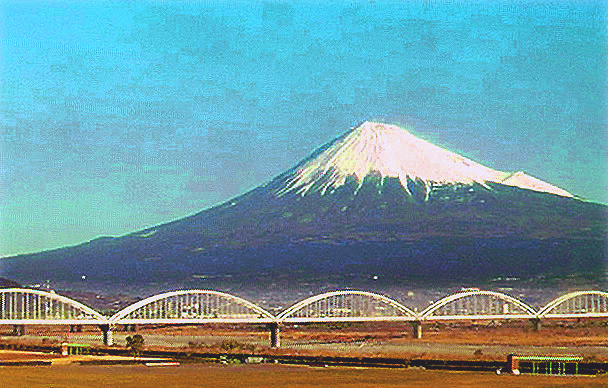 東海道新幹線から見たの富士川鉄橋と富士山 |