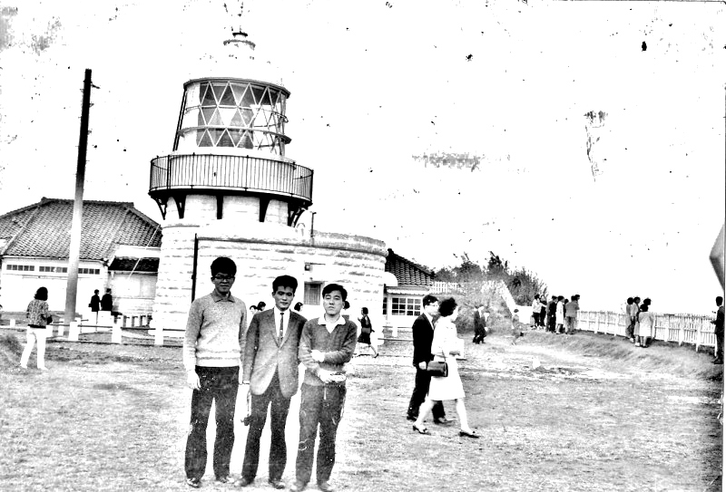 ![]() 緑剛崎灯台を背に大学の友人と:1966年 |