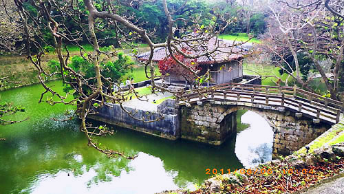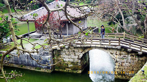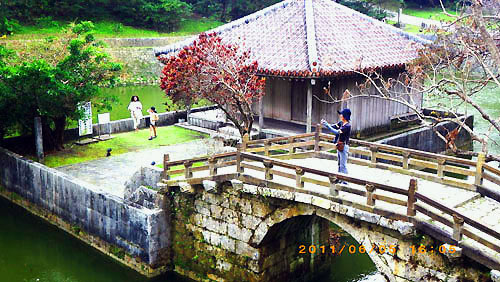 守礼門の前で 1(2009年):沖縄復帰時に改修(朱塗り) |