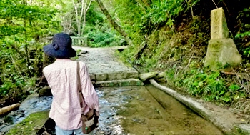 ![]() ↑比地川砂防ダム横を歩く ![]() ↑高い吊り橋を渡り登り道が続く対岸へ ![]() ↑登り道でキノボリトカゲを発見 |