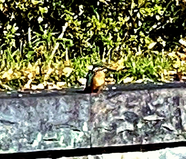 ![]() 江戸東京たてもの園の前の掘に飛来したカワセミを映す |