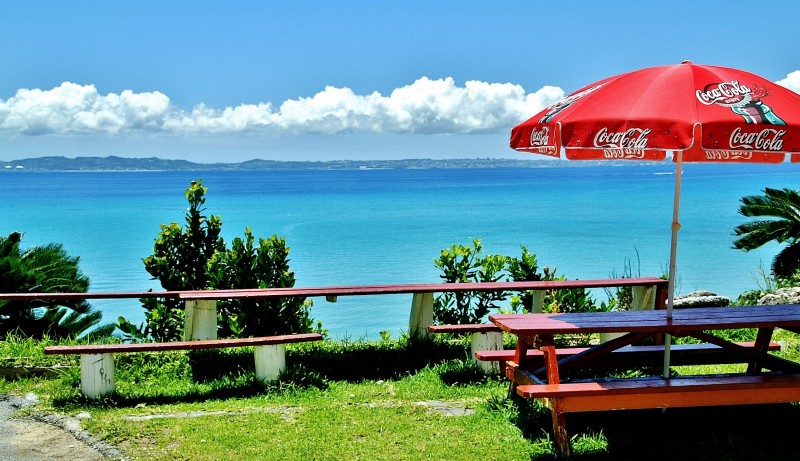 南部地域、南方には久高島が遠望できる。 津堅島はニンジンの生産が盛んであるため、キャロットアイランドの別名を持ち、今は収穫を終えた時期で褐色の広大な畑地が広がっていた。 島の西側にあるニンジンの形の展望台からの景観は素晴らしかった。 朝一番の高速船に乗り津堅島に渡り海岸線に沿って歩いて一周したが沖縄貝塚時代の遺跡など文化財も多い。津堅島は1945年の沖縄戦では激戦地であり、住民は本島に疎開したらしい。 津堅小中学校の先生は本島から通勤しており、行き帰りとも同じ船であった。 |